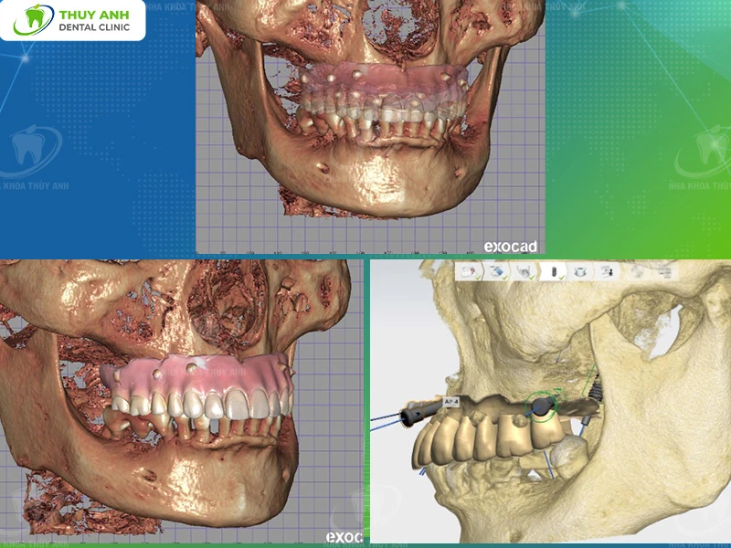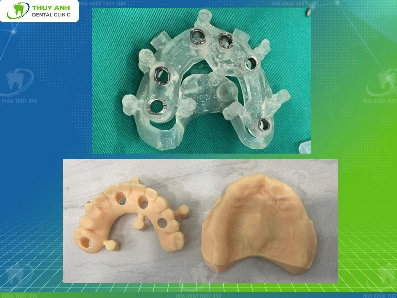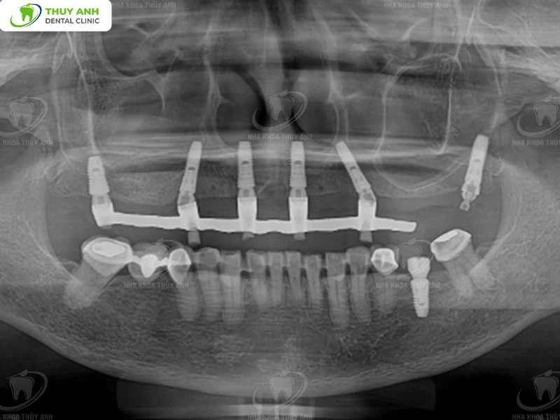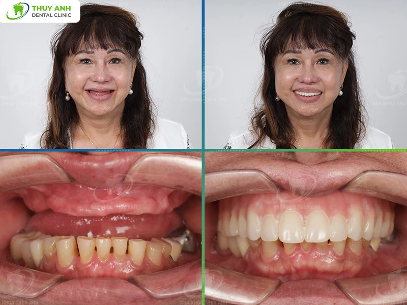 - 6 implants in the upper jaw: to fully restore missing teeth and create a harmonious aesthetic and functional smile