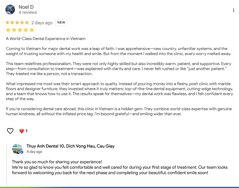 If you’re looking for a trusted, efficient, and English-speaking dental clinic, Thuy Anh Dental is your perfect choice — helping you achieve a natural, confident smile in just a few days during your stay in Vietnam.
