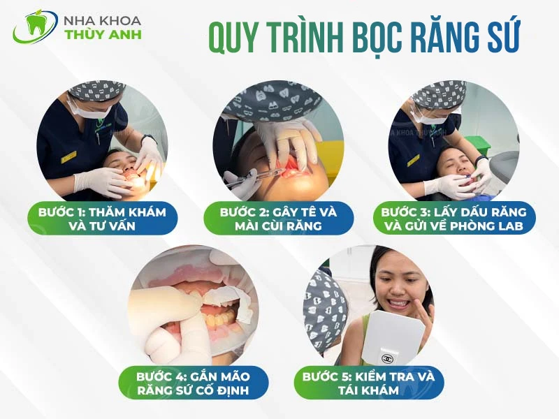 Để bạn dễ hình dung, dưới đây là các bước cơ bản trong quy trình bọc răng sứ và thời gian dự kiến cho từng giai đoạn.